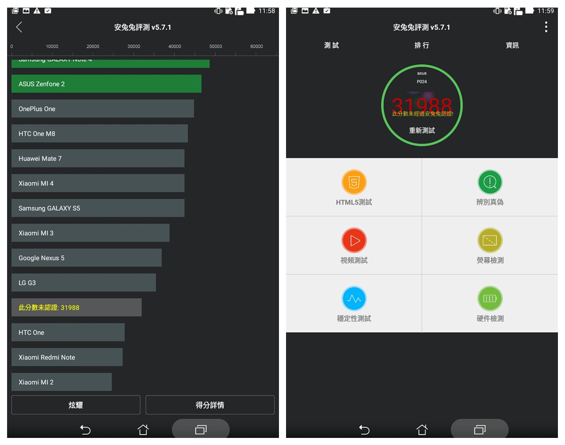 ▲ ASUS ZenPad Z380KL支援4G LTE網路,右圖跑分中,上方兩個為台灣之星4G跑速,下方兩個為中華電信3G跑速。由圖可知,在某些地點中,台灣之星4G的下載會遜於中華電信3G,唯有使用電信三雄的4G LTE才有辦法測試出Z380KL的上網實力。